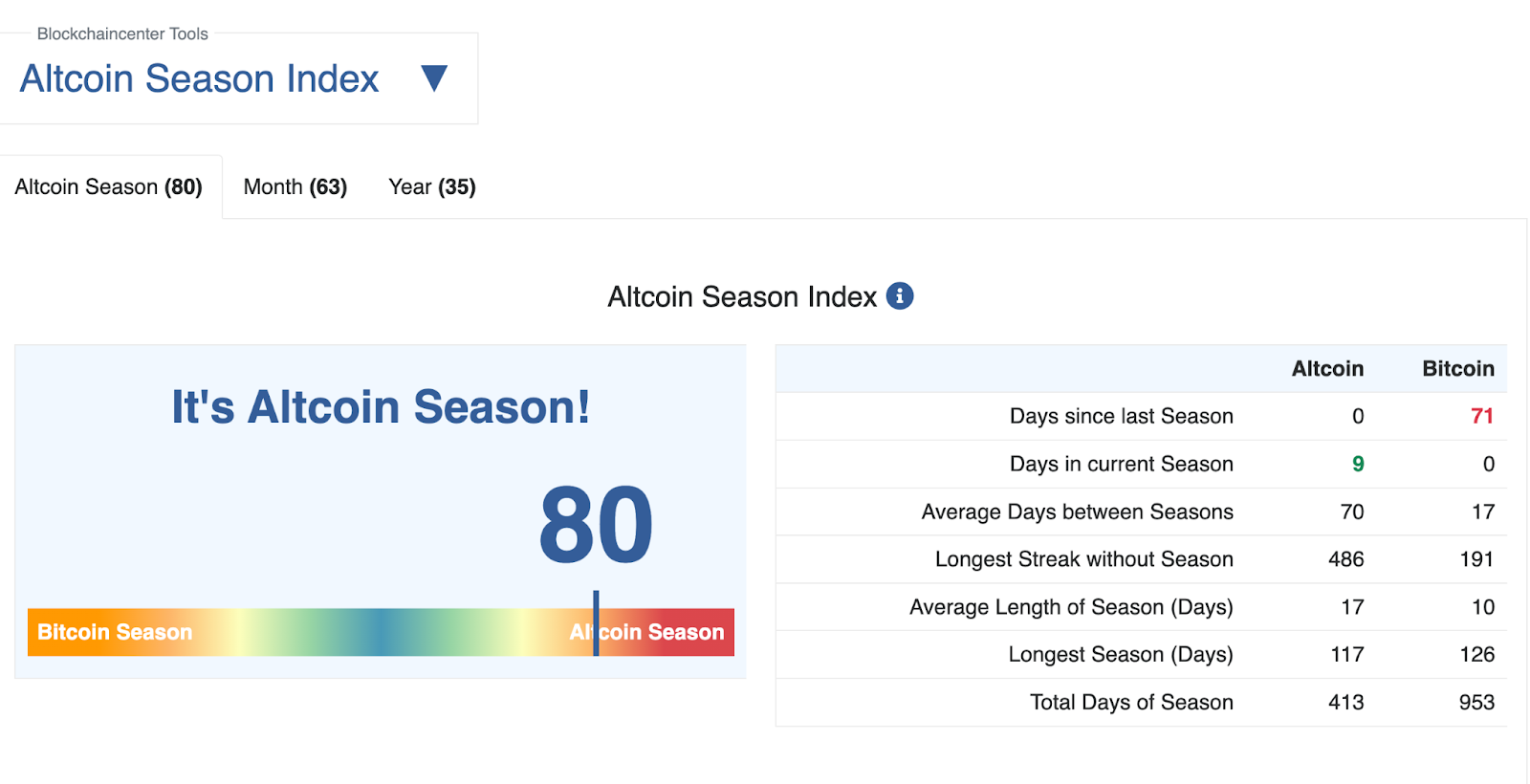 Historically, a full-scale altcoin season has lasted an average of 17 days (source: Blockchaincenter). However, the crypto market changes rapidly, so the next altcoin season can last much longer or shorter than this average.