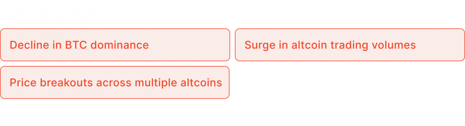 The final sign is sudden price breakouts across multiple altcoins, particularly the most popular ones. These breakouts hint at a market transitioning into an altcoin season.