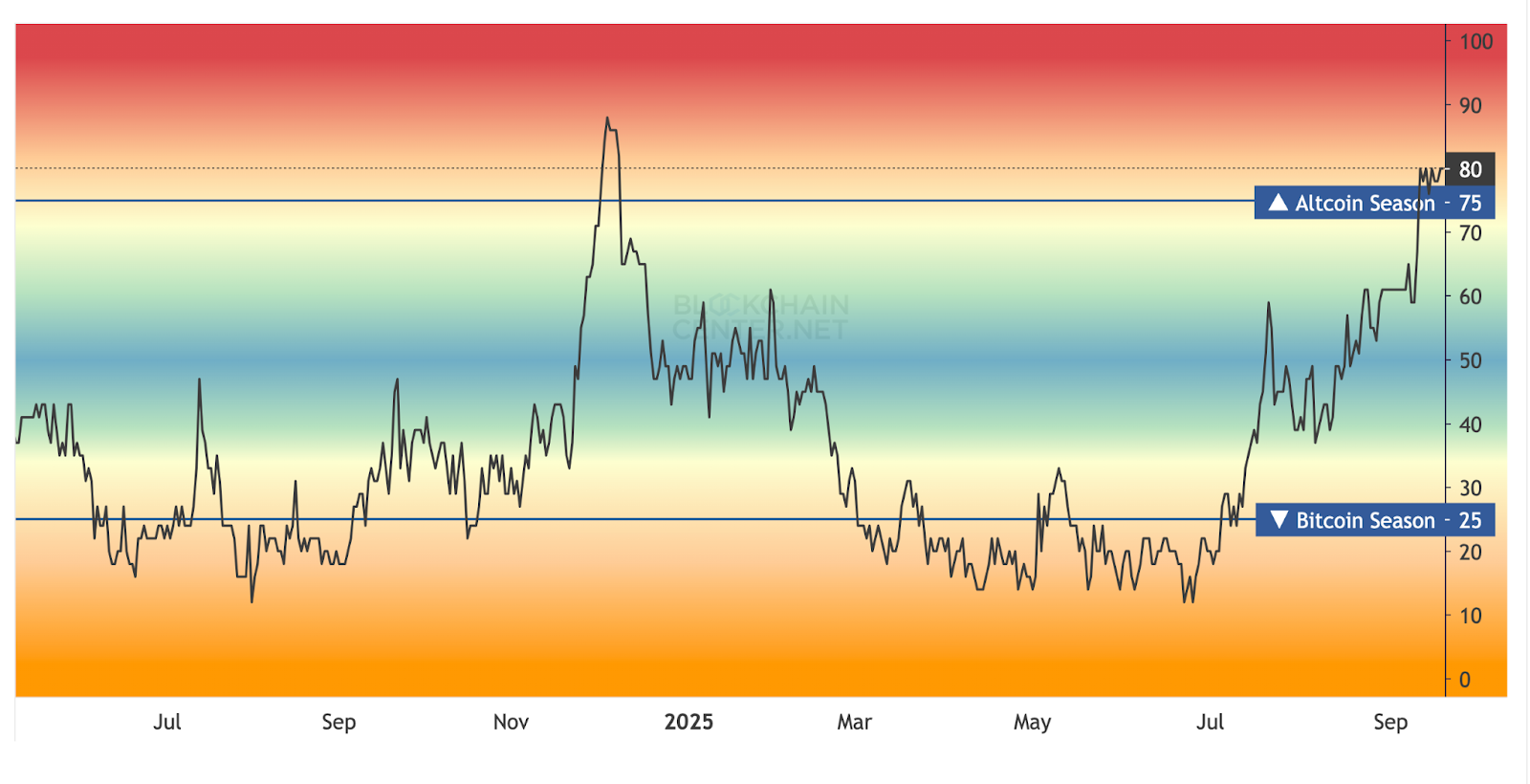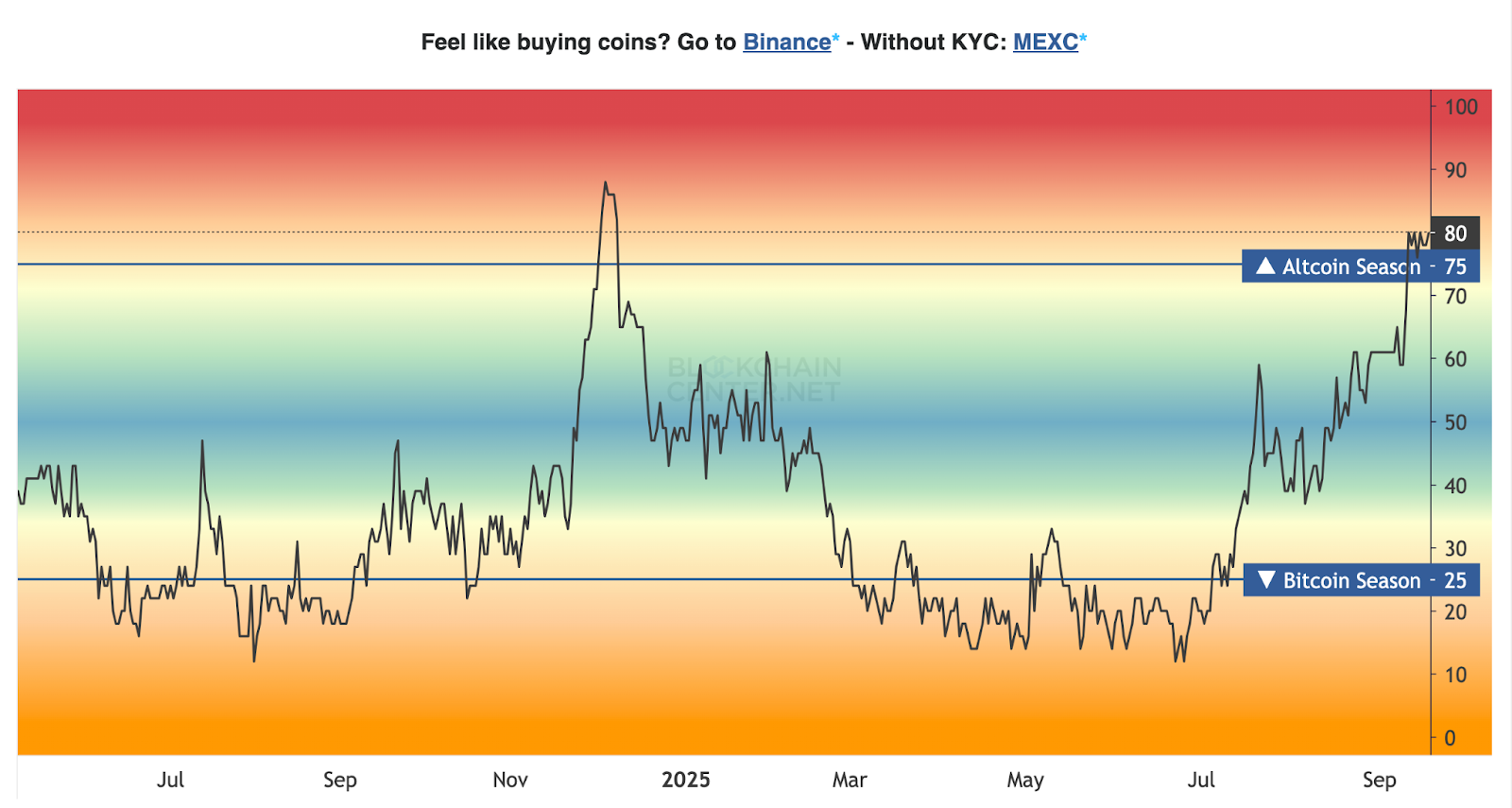 As of September 2026, the ASI indicates that we’re currently in an altcoin season. The current ASI index is 80, above the 75% cutoff for an altcoin season. However, this current season has been present for less than a month.